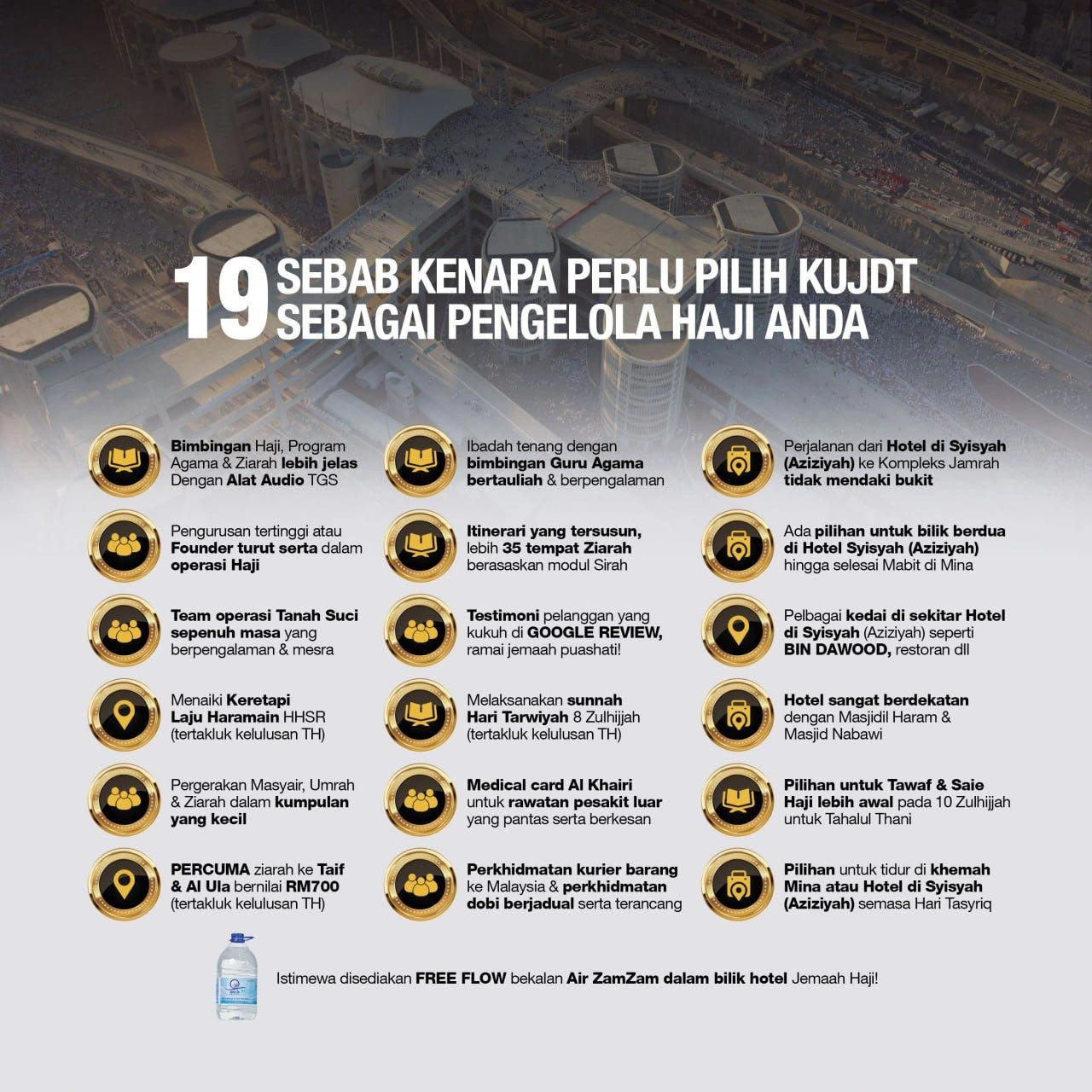 KUJDT adalah agensi pelancongan yang diiktiraf dan mendapat endorsement daripada MOTAC dalam menguruskan pakej Haji dan Umrah. Walau bagaimanapun, laman ini bukan laman web rasmi MOTAC, dan sebarang maklumat yang dipaparkan adalah berdasarkan maklumat terkini yang disediakan oleh KUJDT untuk tujuan rujukan bakal jemaah.